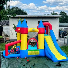 Die Hüpfburg mit Hindernissen ist ideal für kleinere Feiern mit aktiven Kids. Die Hüpfburg ist ausschließlich für den privaten Gebrauch geeignet.